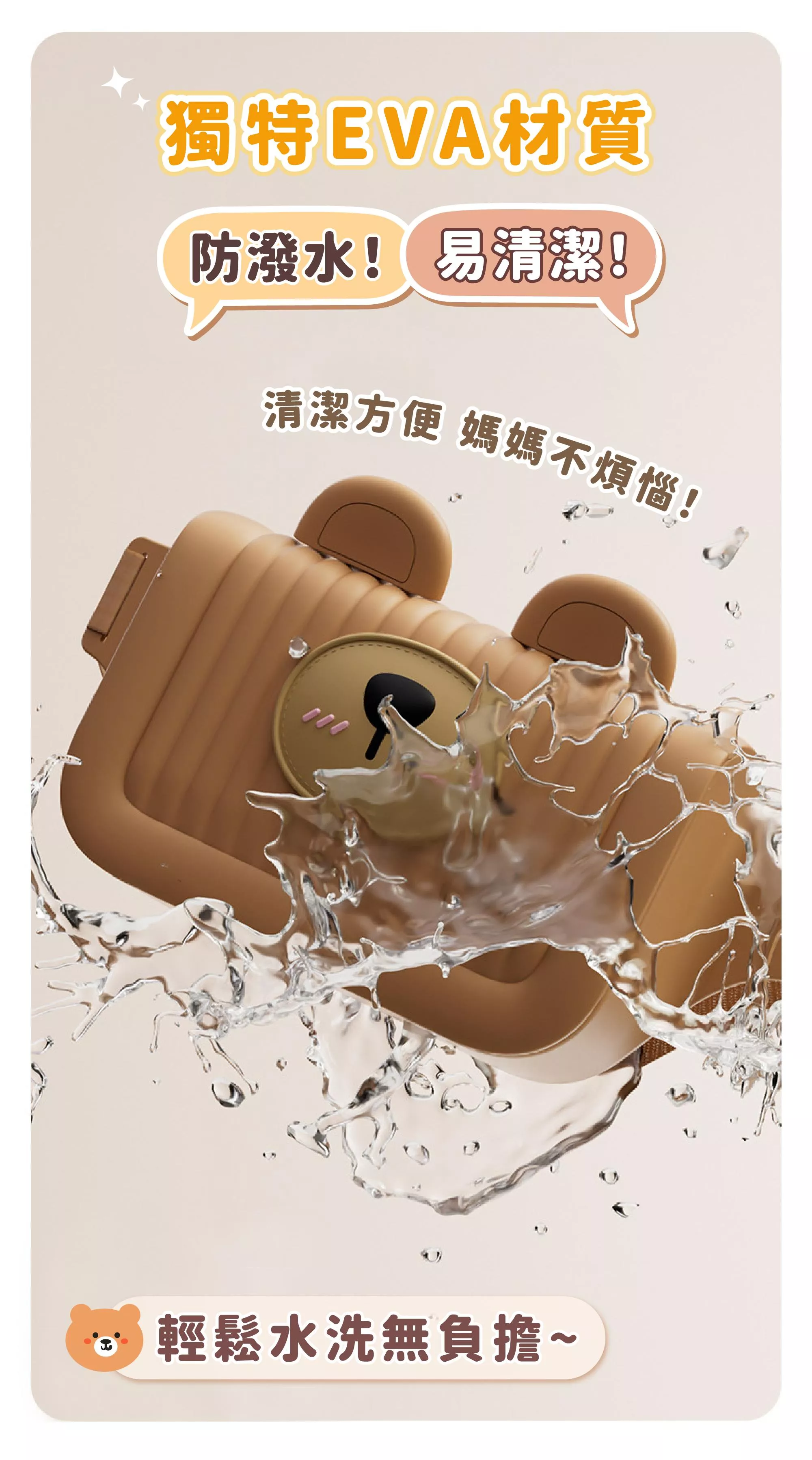 戶外玩水、吃點心都不怕髒,媽媽最愛的好整理材質